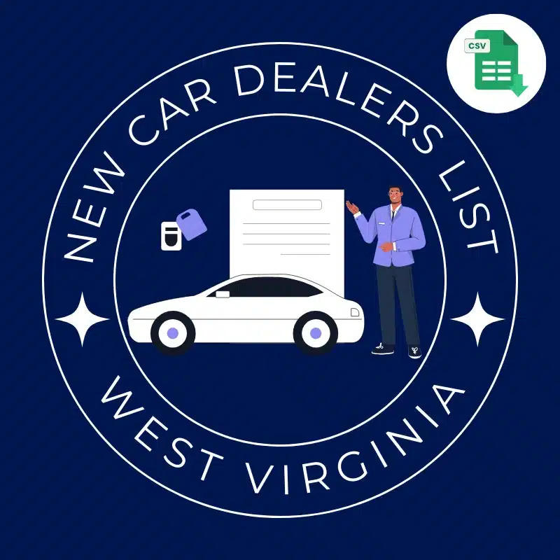 Tired of outdated contact lists? Our auto dealer email leads in West Virginia are regularly updated to provide the most current data. Whether you’re targeting automotive professionals, dealerships, or businesses across West Virginia, our West Virginia Auto Dealer Contact Database ensures you reach the right people.